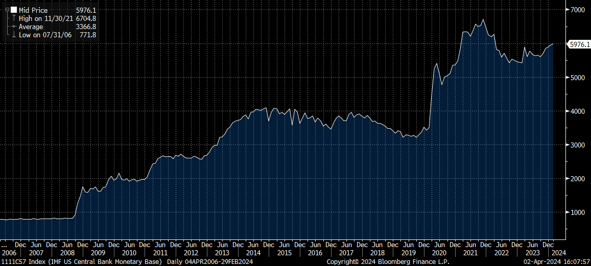 For all the talk about the Fed shrinking its balance sheet, the monetary base has grown since the banking crisis of March 2023: