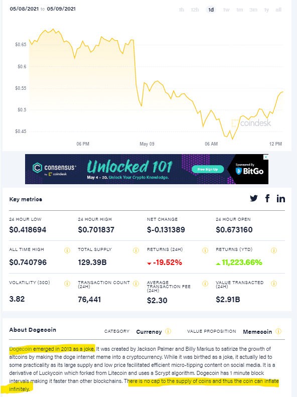 - Unlimited supply. But Bitcoin has a finite supply, you say. True, though that, in and of itself, weakens the actual use case for it as a medium of exchange. Conversely, everyone’s favorite meme-oriented cryptocurrency, dogecoin, has an unlimited supply (we acknowledge there is a potentially infinite supply of real pennies, i.e., U.S. currency, as well). However, what we really mean is an unlimited supply of new coins.